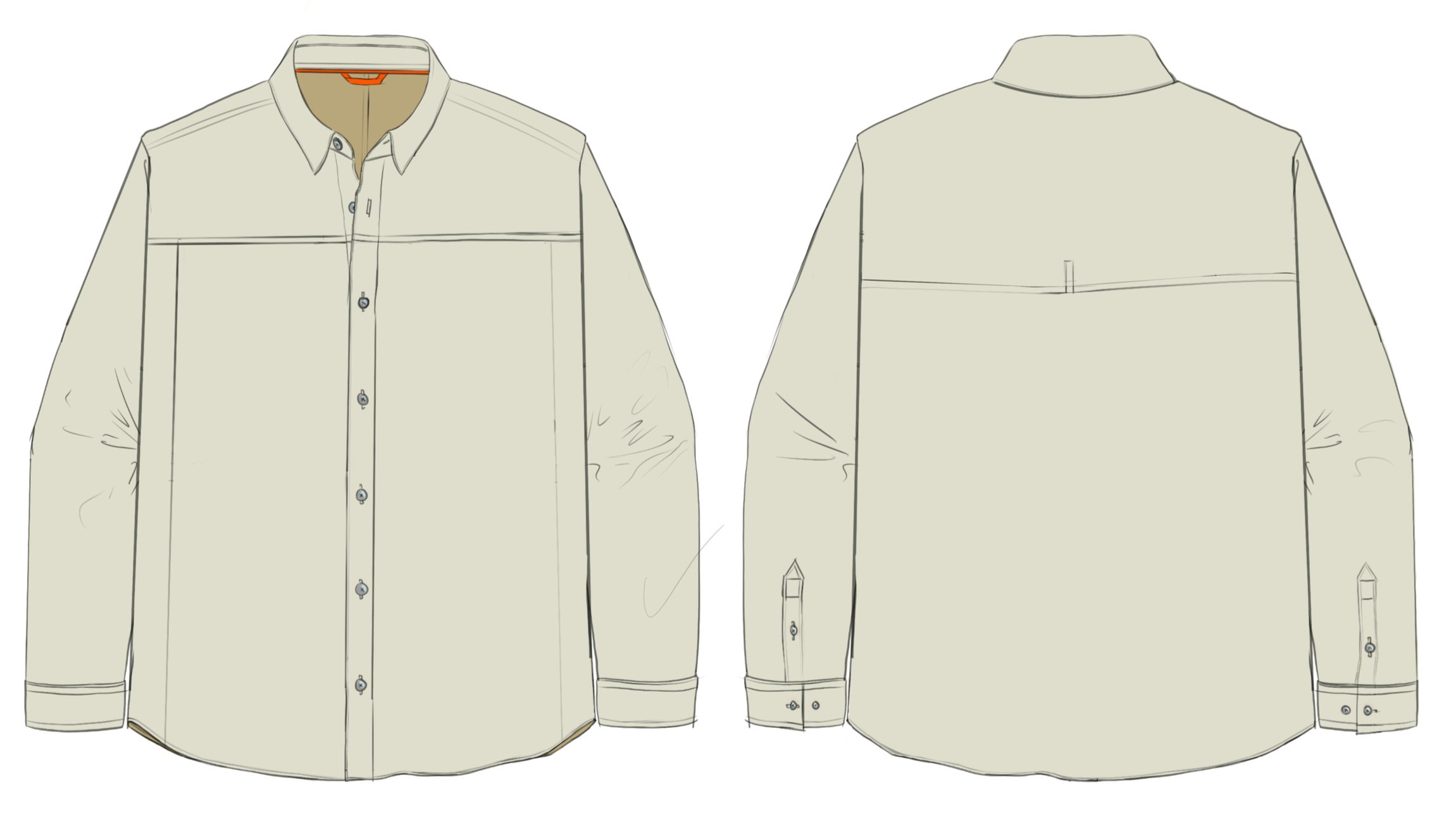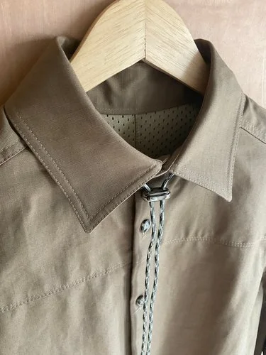 A button-up shirt made from cotton ripstop fabric. A storm flap and athletic mesh yoke provide ventilation for outdoor wear. Created for my capstone collection in FIT’s Menswear Design program.